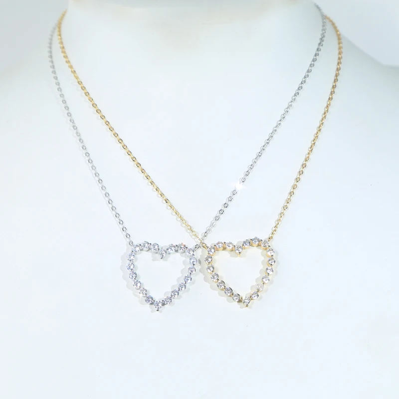 2024 Valentine's Day Gift Fashion Jewelry For Girlfriend Iced Out Bling 5A CZ Hollow Heart Pendant Necklace