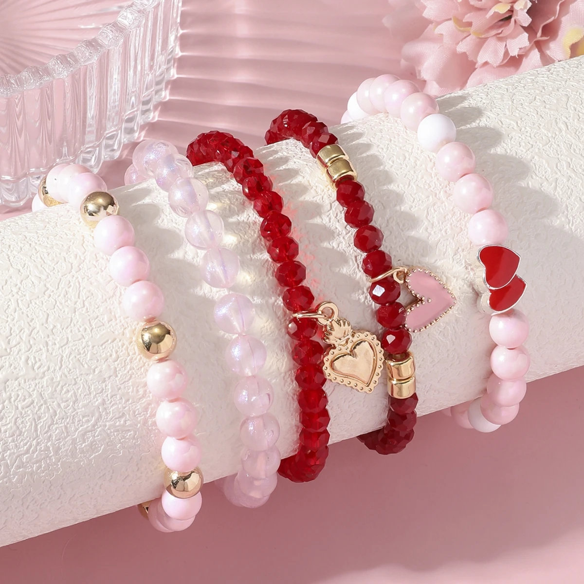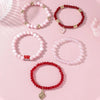 Sweet Love Heart Beaded Bracelet for Women Girls Valentine's Day Handmade Layered Elastic Bracelets Party Wedding Jewelry Gift